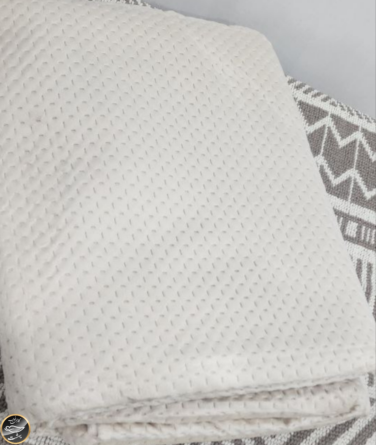 روتختی یک نفره پنبه دوزی مخمل ترک (دو تکه - کرم روشن)