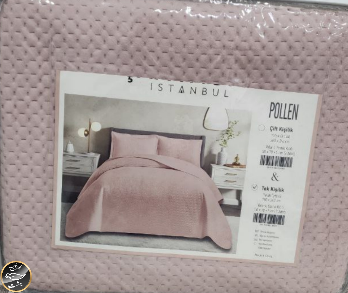 روتختی یک نفره پنبه دوزی مخمل ترک (دو تکه - صورتی)