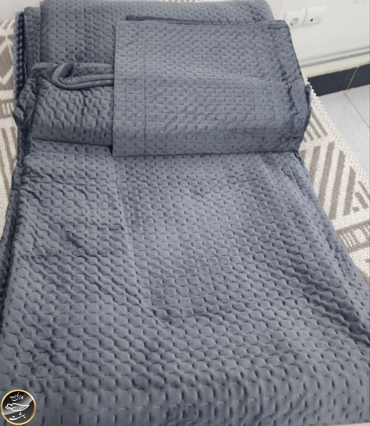 روتختی دونفره پنبه دوزی مخمل ترک (سه تکه - دودی)
