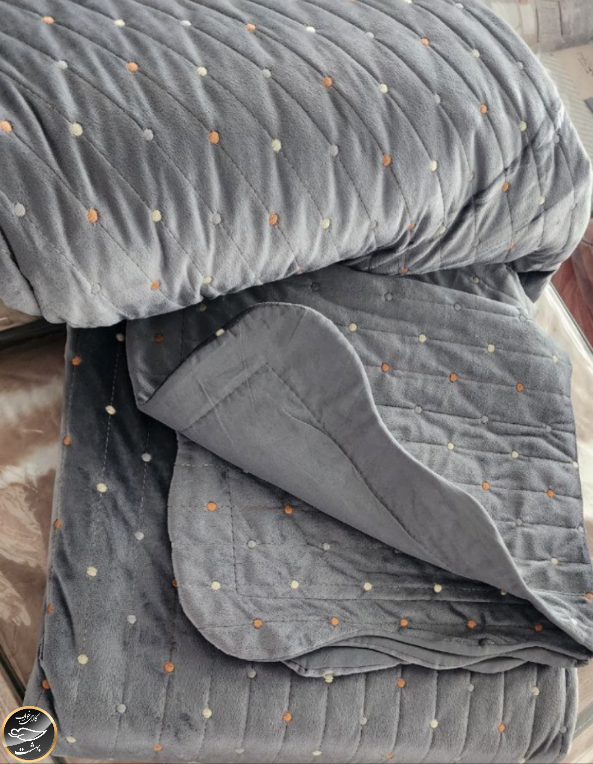 روتختی دونفره پنبه دوزی مخمل ترک (سه تکه - دودی)