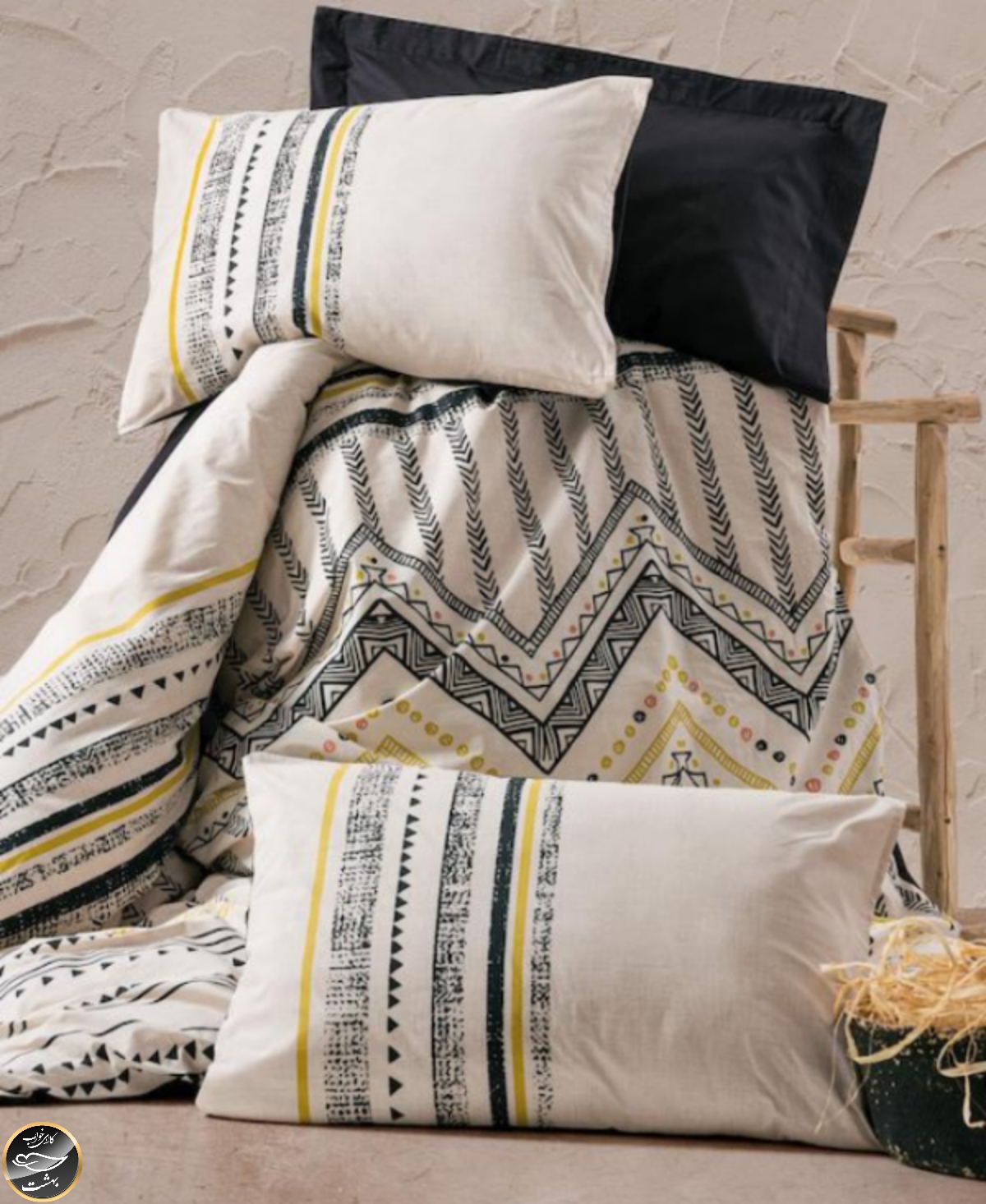 ست کاور لحاف دونفره Ethnic - Elvira Siyah (چهار تکه